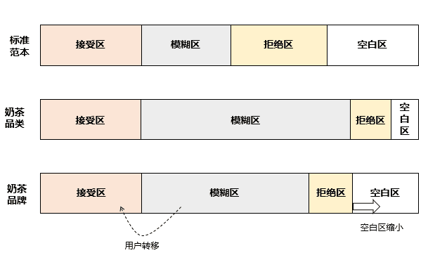 模糊区:用户对品类/品牌的态度是模糊的,需要看具体的情况,有可能被说服购买。