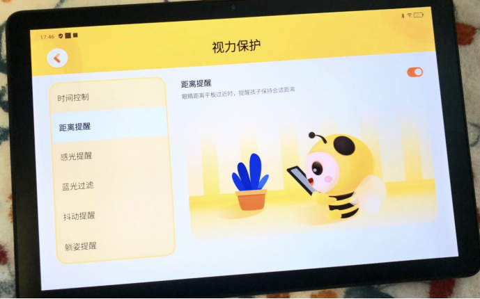 时长控制、感光提醒、抖动提醒和躺姿提醒,一系列监督,能有效帮孩子养成正确的用眼习惯,减少因使用电子设备太久损伤视力的问题,全方位地守护孩子视力健康。