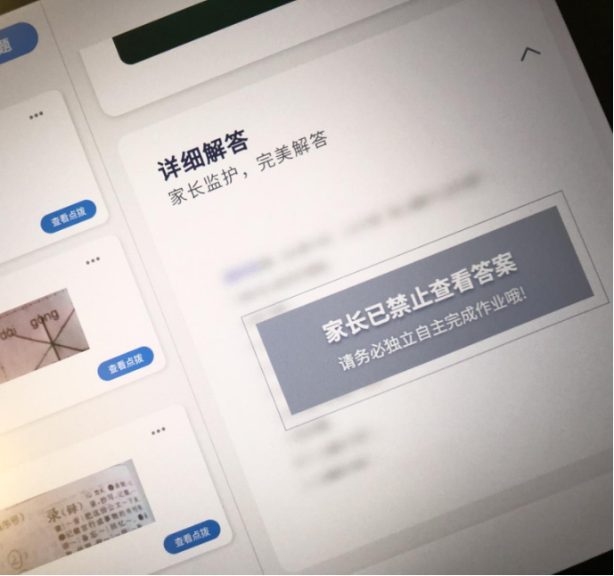 “错题的答案解析全都需要家长输入密码才会出现,这一点比较好,对于自控能力差的孩子来说,是很实用的限制。”体验者B说。