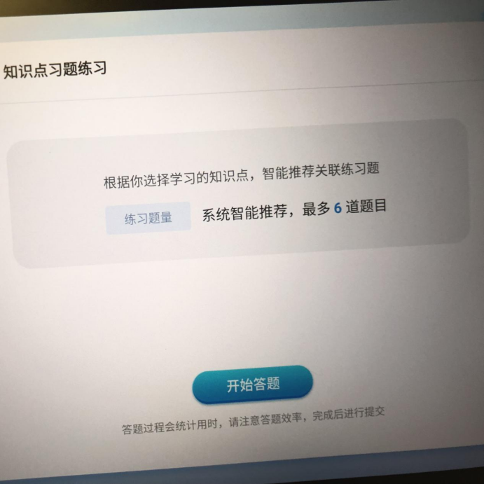 “AI精准测试完以后,它会匹配一次最多6道题的巩固练习,这个题量是孩子比较能接受的,不会让孩子非常反感。”体验者C说。