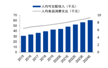 我国的经济基础是现制茶饮的基本盘,社会消费规模持续扩大,现制茶饮可进一步挖掘居民饮料类消费潜力,推动消费升级,利好现制茶饮行业。现制茶饮本质属于可选消费,中高端现制茶饮ASP(average selling price/平均零售价格)为10元以上。近年来我国经济持续快速发展,人均可支配收入与人均食品支出持续增长。消费水平提高的背景下,消费者追求品质化、个性化消费,消费升级是支撑行业发展的基本盘。