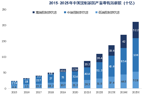总而言之,高端、中端、低端茶饮市场在消费分层下市场规模持续扩张,高端茶饮增速领先。但根据预测,在未来几年,不同市场定位的现制茶饮的CAGR将逐渐接近。