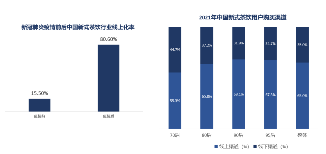 根据奈雪的茶联合CBNData发布的《2020新式茶饮白皮书》显示,54%的消费者选择通过线上渠道购买新式茶饮,与2019年相比,新式茶饮线上订单占比提升近20%。除了可以缩短排队等候时长,无接触也是消费者选择线上点单的主要原因。